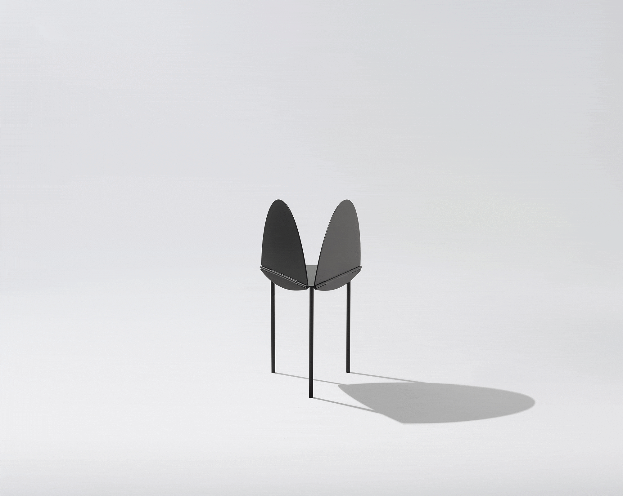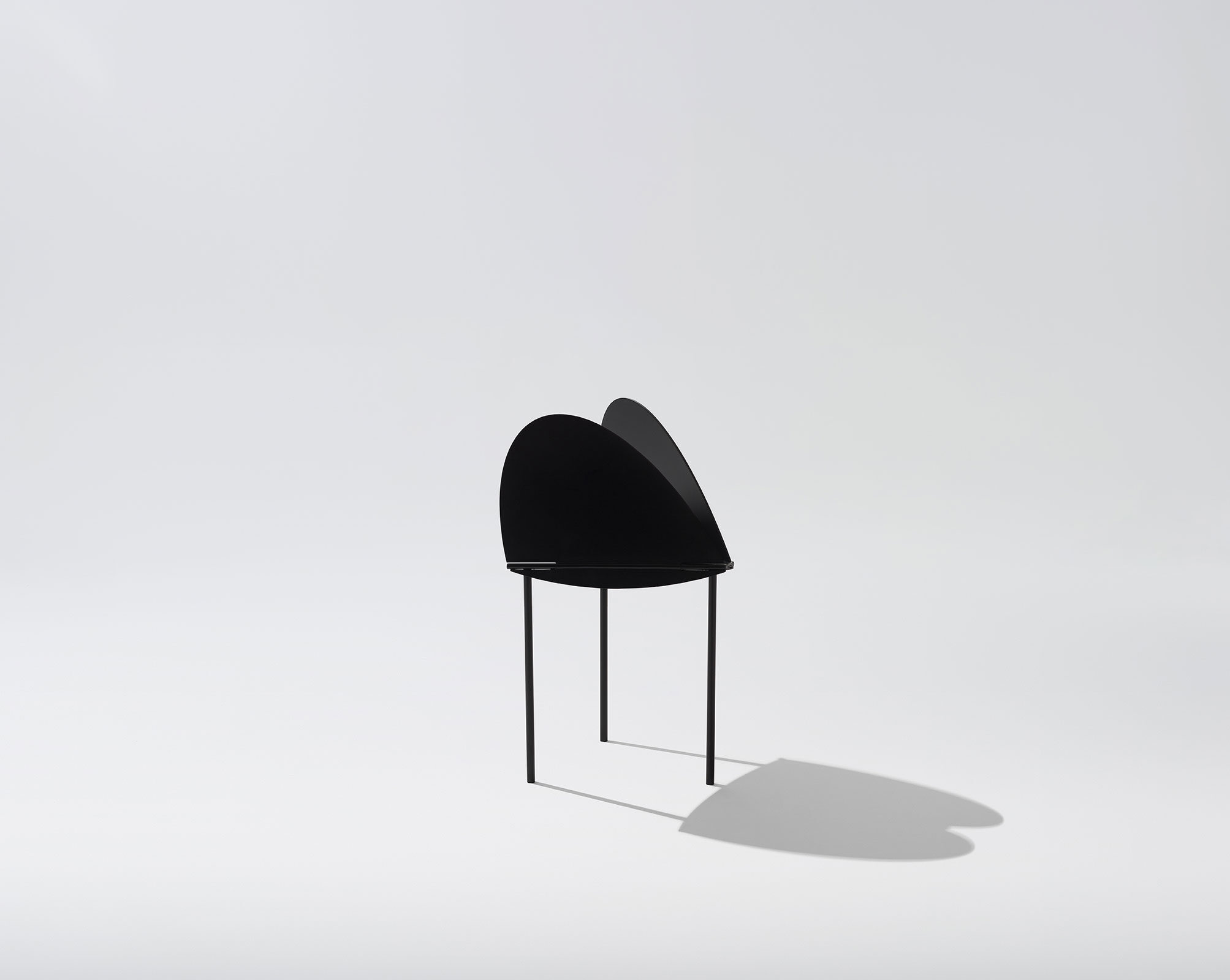 Fabricated from three planes of 5mm mild steel connected together with a custom steel hinge. The table is available in a variety of finishes.