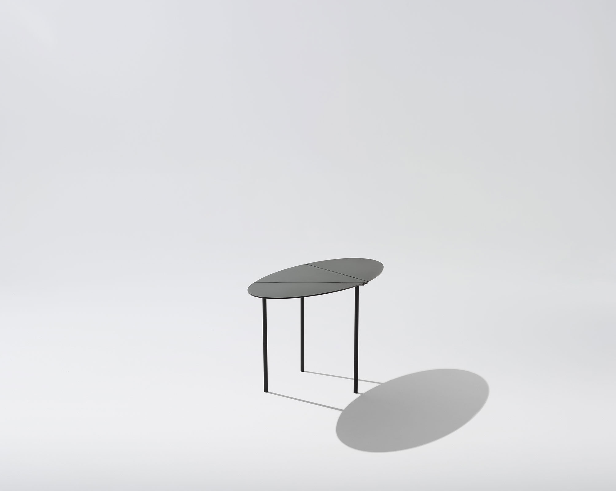 Drop Table reinvents the historic drop leaf table. Compact in size it celebrates the corner of a room. It is usable as a small desk or as a surface for ornamentation. The decorative drop leaf sides enable the Drop to open into a small sculptural table, suitable for a small apartment or equally a large house. With a long life, loose fit approach, the table is designed for the owners’ lifetime, adapting as their living situation changes.