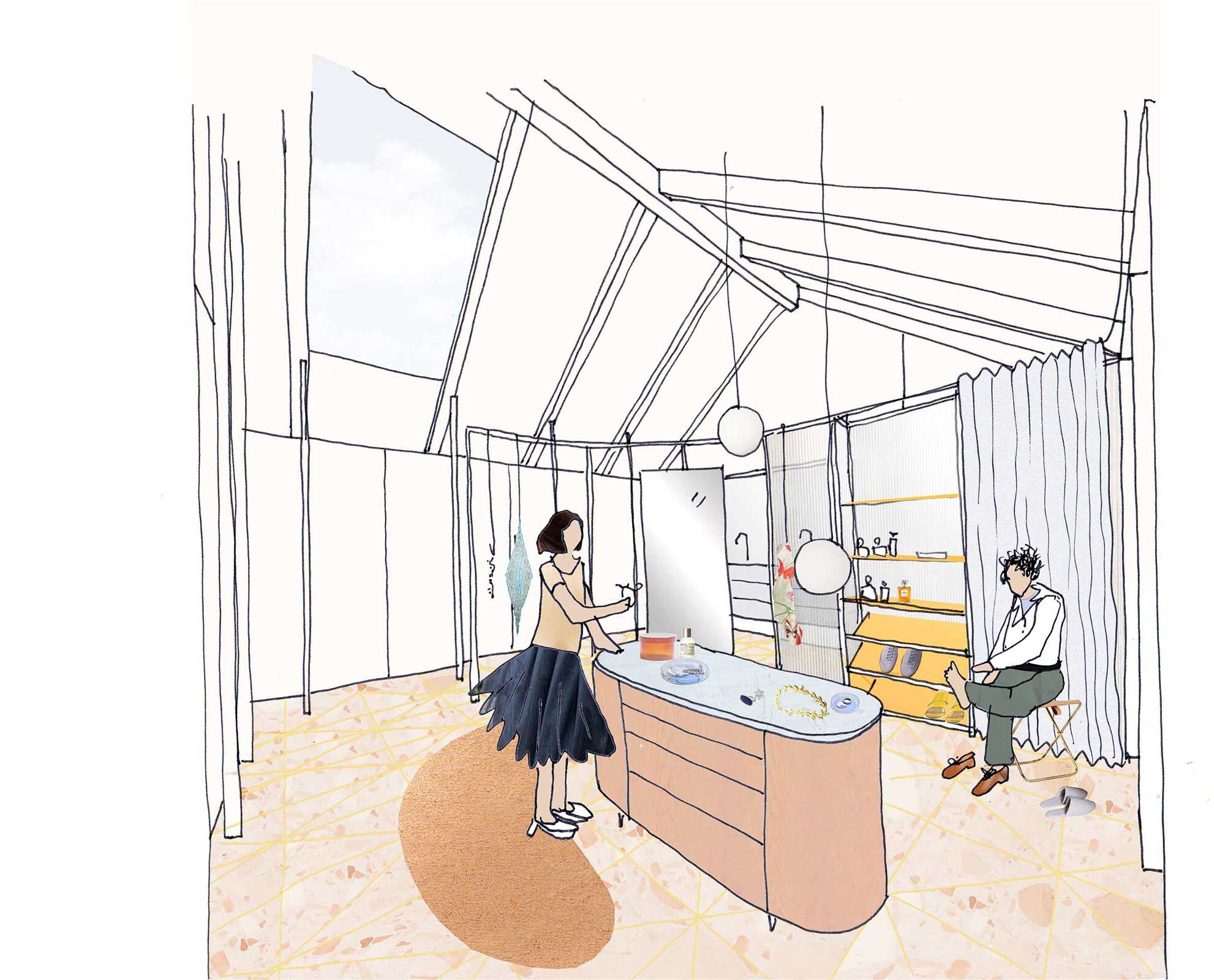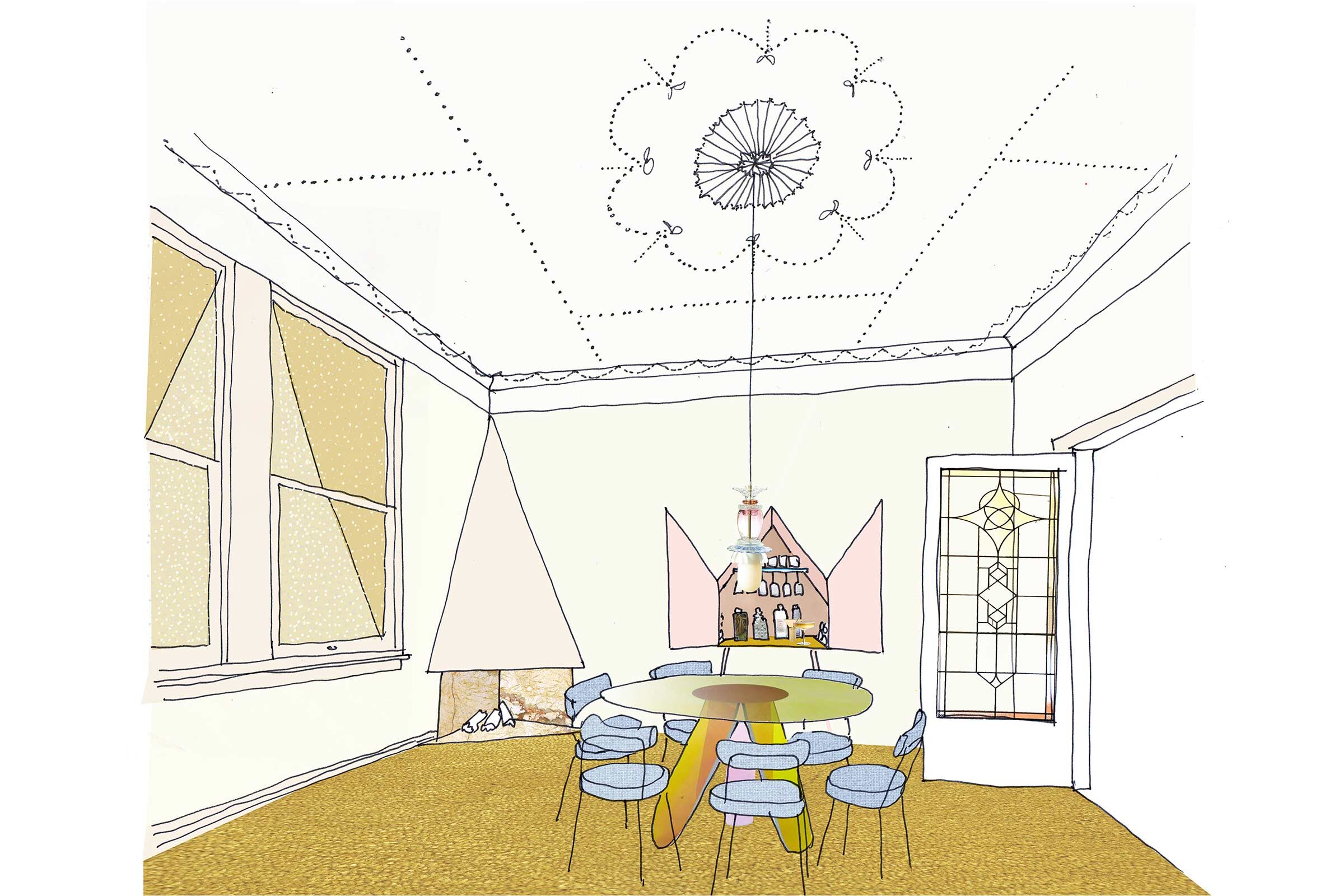 There are many types of living spaces at ground level and each of their uses helps make each space special and unique. A Movie Room inspired by the night sky has a large curtain that turns daytime into night time and envelopes its occupants providing warmth and comfort. Adjacent and in contrast to this the Gin Room sparkles and dazzles, inspired by refracted light passing through antique cut glass. A delicate spectrum of colours creates a magical experience.